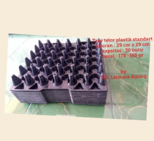 Rp 12.700 Rp 15.200Egg tray breeding / Tempat telur plastik penetasan kapasitas : 36 butir ukurqan : 28,5 cm x 28,5 cm (kecil) Kegunaan : Telur ayam kampung (joper) , telur ayam negeri warna : kuning, merah